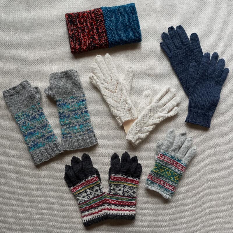 Māra's Cross gloves, hand knitted in five colours of wool/apaca yarn, very soft and perfect to keep you warm on wintery days